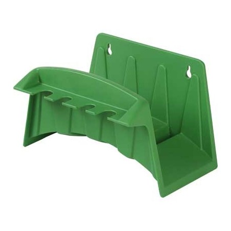 In acciaio zinco-cromato. Grazie alla sua struttura particolarmente robusta, è utile per raccogliere non solo tubo da irrigazione, ma anche cavi elettrici, catene, ecc.
