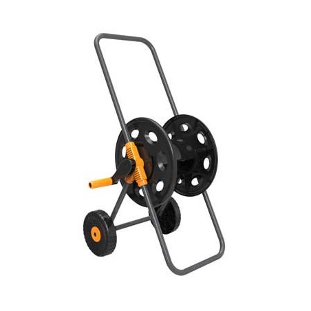 In acciaio zinco-cromato. Grazie alla sua struttura particolarmente robusta, è utile per raccogliere non solo tubo da irrigazione, ma anche cavi elettrici, catene, ecc.