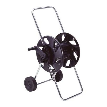 Telaio in acciaio zincato, rullo in robusto polipropilene e ruote. Adatto a piccole e medie superfici. Portata tubo: 60 m da 1/2".