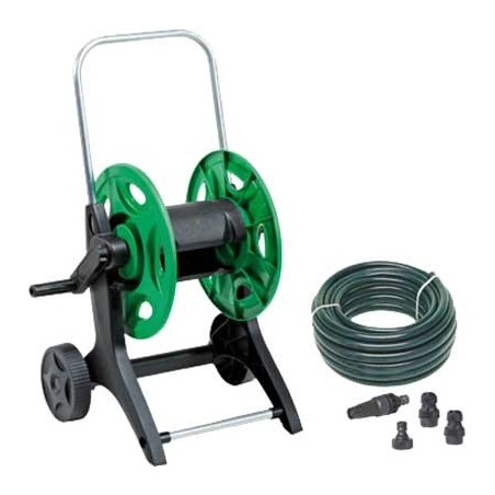 In metallo e plastica. Completo di raccordi a scatto. Portata tubo: 20 m da 1/2".