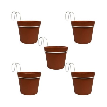 Kit vasi con balconiera 'pop-up' ø 12x13h - colore antracide dal design moderno e innovativo che li rende adattabile ad ambienti sia interni che esterni. In dotazione supporto in ferro verniciato per appendere il vaso su qualsiasi tipo di ringhiera. Ogni kit comprende 5 vasi.