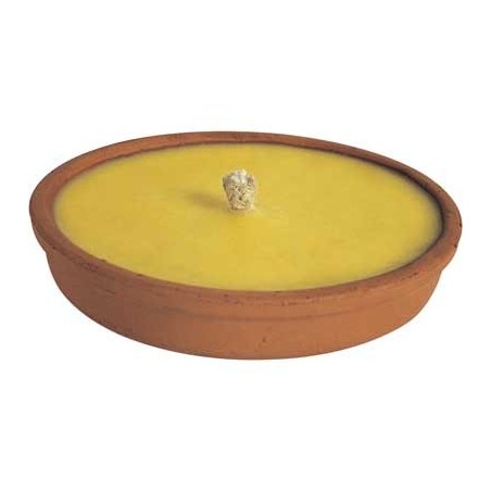 Fiaccola alla citronella in terracotta ø cm 14x4h realizzata con materie prime selezionate, dotata di stoppino anti-vento di larga sezione per ottenere una fiamma coreografica di grandi dimensioni. Indicata per un uso esterno.