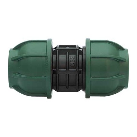 In polipropilene. A compressione per il convogliamento di fluidi in pressione, particolarmente indicato per impianti di irrigazione e giardinaggio.