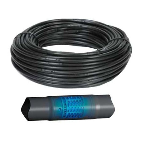 E' costituita da un tubo in polietilene con un gocciolatore incorporato. Questo sistema è ottimale per l'irrigazione di siepi, aiuole, orti, serre e colture in campo aperto. Il basso consumo idrico e la bassa perdita di carico consentono di ottenere elevate lunghezze d'irrigazione. Gocciolatore a due fori, portata nominale 2,1 l/h.