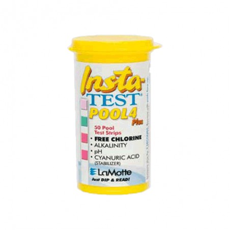 Kit composto da 50 strip. Pratico e semplice Test Kit per il controllo di Cloro libero, pH, Alcalinità e Acido Cianurico. Immergere la striscia nell'acqua di piscina per 5 secondi; dopo 15 secondi comparare il colore che risulta sulla striscia con l'apposita scala sul tubo contenitore.