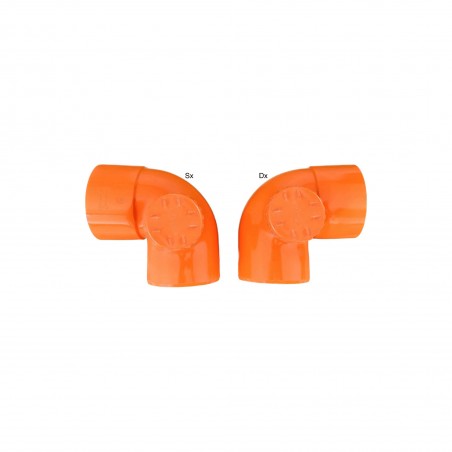 La curva a 87,30° con tappo ispezione saldato è prodotta in materiale plastico ( PVC ) e destinata al trasporto di fluidi, con giunzione mediante incollaggio.