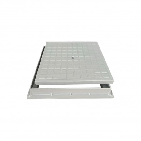 Chiusino e telaio in PP (polipropilene) con foro con bullone, ha il compito di chiudere e sigillare i pozzetti interrati.