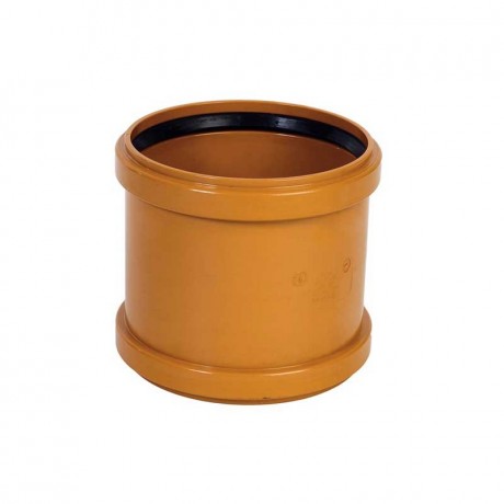 Il manicotto per uso fognatura è di colore RAL 8023 ( color mattone ) e con sistema di collegamento tramite guarnizione a labbro ( o-ring ) sul bicchiere.
