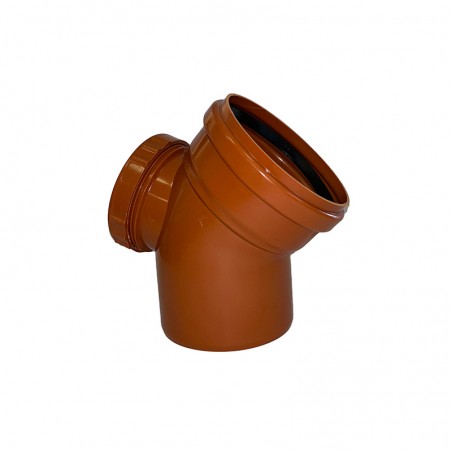 La CURVA 45° con ISPEZIONE e GUARNIZIONE tipo FOGNATURA viene usata per gli scarichi nelle tubazioni per fognatura.